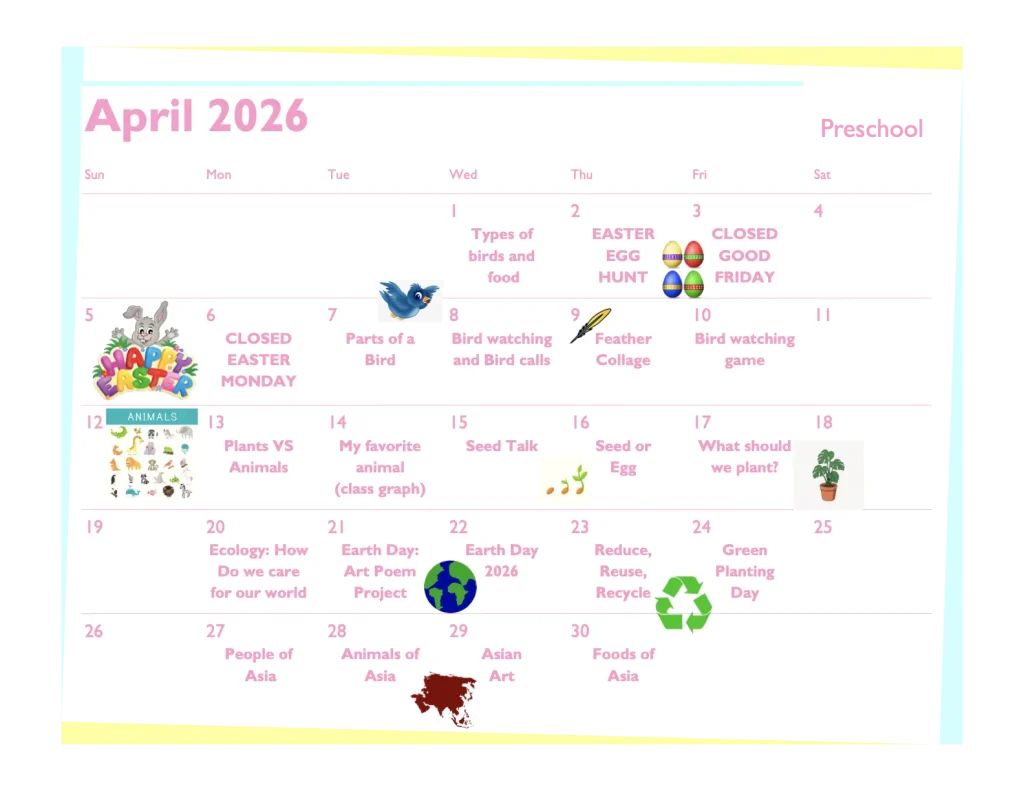 Hillcrest Toddler April Calendar